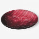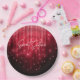 Scarlet red lights, like the rainfall of glass on a chandelier, cascade down the face of this striking birthday paper plate that also features an eye-catching signature font for the text 'Sweet Sixteen'. This glamourous party night graphic against a black background is also available in a variety of other colours to suit your chosen theme. Add your name using the provided template. Search ID790 to see other colour options and products with this design.