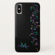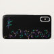Cascading Music Notes Monogram iPhone X Case. Hanging strands of musical notes in violet pink gold and teal green on black or your choice of background colour. Fill in your name and initial at the prompt to personalise and customise anyway you like. A great gift for your favourite musician or music lover.