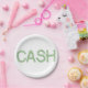 The word cash made up of bank notes. This design looks really effective on these Paper Plates
