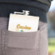 Well made flask, a little better than I had expected. Flask came in clear plastic box which gave it a nice presentation when I took it out of the zazzle packaging. Image is not printed on flask but on sticker. Don't know how this will hold up I haven't used it yet. This would make a Great gift! I plan to purchase more for friends! Cheers. I thought a little brighter than computer. Very crisp, writing wasn't