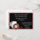 A perfect invitation for bachelor parties or casino events. Design features playing cards, roulette wheel and red dice with card suit border in red, black and white.
