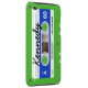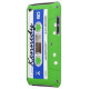 A cassette tape phone case in green, blue, and white; personalise it with your name!