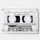The "Cassette Tape" design features a typical vintage music cassette tape, with a transparent case and colourful stickers and writing, It also has customisable text which you can personalise.