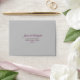 These RSVP envelopes are simple yet elegant. Designed as an A2 sized envelope to be used with 4.25" x 5.5" sized cards, they feature a grey background with a pre-printed address on the front in elegant script lettering. The inside flap is a cassis purple, magenta, or berry colour with faux foil silver grey lace frills. wonderful and classy way to make it easy for your guests to send in their response cards.