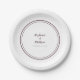 Simple, minimalist and chic Wedding party plates feature the names of the bride and groom with the wedding event date in trendy cassis purple lettering and script. This modern design includes a double framed border in chic purple on a minimalist white background. Personalise with your wedding details! Perfect for your special celebration! Be sure to see the collection link on this page to view all of the matching items for this modern, minimalist design! Please direct questions or custom requests to invitationsuites@gmail.com.