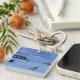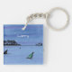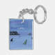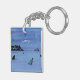 A watercolor painting of a shipwreck, a castaway, and a message in a bottle adorns this customisable keychain!