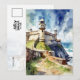 This postcard features a watercolor portrait of Castillo San Felipe del Morro in Puerto Rico.