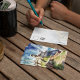 We got these postcards of places with all of our travels for people to send out notes at our wedding! .