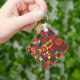 The key chain is made of metal and really sturdy. The flower design is really cheerful. The logo and colors are clear and crisp!