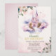 This first birthday invitation with watercolor castle on clouds with flowers and polka dots.