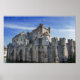 The Castle of the Counts in Ghent, Belgium. Painting of Medieval castle Gravensteen surrounded by water.