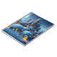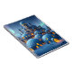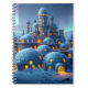 Notebook of an impressive castle made of igloos and stone, in a winter landscape of snow and pine trees. Magical aurora lights play in the evenfall sky, bathing the mountains and valley in a surreal atmosphere of heavenly colors. Amidst the misty strands of cold and snow, the stronghold castle known as "Winter Fire" stands. It is the last bastion of civilization and warmth before a vast expanse of frozen tundras, snowcapped mountains, and haunted forests open themselves to the wanderlust of the willing traveler... This artwork was created with ImageFX and upscaled with Leonardo.ai. Additional editing was done offline by me.