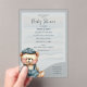 Are you planning a casual and cosy environment for your baby shower festivities? Consider this charming baby shower acrylic invitation. It has all you need for the invite. Soft blue, white, and tan colours for a relaxed and playful appeal. Bear Jean Baby design. Use the template to personalise.