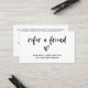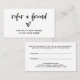 These stylish and chic black and white "refer a friend" small business referral cards cards feature casual, modern script typography, along with an elegant matching heart. A look that is both stylish and professional, and perfect for any type of occupation, such as content creator, makeup artist, hair salon stylist, and more. The back contains plenty of room for you to totally customise with your store or company information.