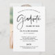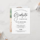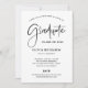 These elegant, modern 2021 grad party invitations feature trendy, casual script typography in black on a white background. Add a photo of the graduate to the back. A stylish, black and white graduation invitation.