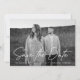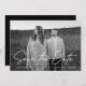 Simple save the date card featuring your horizontal engagement photo with "Save the Date" in a white handwritten script overlay. Personalise the modern save the date card by adding your names, wedding date, and wedding location. The photo save the date reverses to display your wedding website and other details in white lettering with a black background.