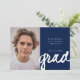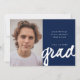 The Casual Script Grad | Simple Photo Graduation Announcement features handwritten typography and minimal type. The background colours can be changed to match your school colours. Let friends and family know you have a graduate and what their future plans may entail. The front has a vertical photo with name and school details. The back has a personal message and additional text. Click edit to customise this design and add your personal details and photo.