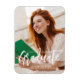 Casual white script photo overlay, personalised graduation photo magnet. Send out your Grad's announcements in style and check out more casual announcements for 2025 graduation in our shop!
