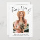 Simple and modern graduation thank you template card to send out to those who congratulated you, attended your graduation party, gave you gifts etc. It says "thank you" on the top in a casual hand lettered script font with a heart at the end. You can add a second picture on the back and the message is editable.