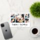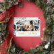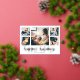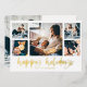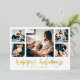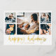This simple, classic gold foil family Christmas greeting card features modern, casual script typography that says "Happy Holidays", with a multi photo grid of five photos on the front and one more on the back.