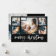 This simple, classic black and white family holiday greeting card features modern, casual script typography that says "Merry Christmas", with a multi photo grid of five photos on the front and one more on the back.