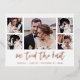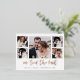 This simple, rose gold foil wedding announcement postcard features modern, casual script typography that says "we tied the knot", with a multi photo grid of five photos. A stylish way to let friends and family know about your elopement or that you are just married.