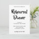 Trendy typography rehearsal dinner invitation. Modern and stylish, this design features a coordinating combo of casual script and elegant sans serif typefaces in black. Cards reverse to a hand drawn pattern of white polka dots in a black background. Personalise this custom design with your own text and details. Easily change colours by clicking "Customise" to go to the design tool and selecting new ones.
