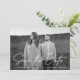 Simple save the date card featuring your horizontal engagement photo with "Save the Date" in a white handwritten script overlay. Personalise the modern save the date card by adding your names, wedding date, and wedding location. The photo save the date reverses to display your wedding website and other details in white lettering with a terracotta background.
