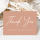 Simple wedding thank you card featuring "Thank You" displayed in a white handwritten script with a blush terracotta background. Personalise the front of the modern thank you card by adding your name. Add your custom message to the back.