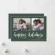 This simple classic green and white family holiday photo card features modern, casual script typography that says "happy holidays", with a two photo grid on the front for a stylish, modern and minimalist holiday design.