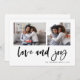 Casual Script Two Photo Grid | Love and Joy Holiday Card