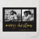 This simple classic charcoal black family holiday photo card features modern, casual gold foil script typography that says "Merry Christmas", with a two photo grid on the front for a stylish, modern and minimalist holiday design.