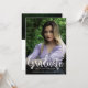 Easygoing graduation invitation announcement, perfect for the high school or college grad. Modern minimalist typography, casual elegant script "Graduate" writing. Capture those special moments of growth and smiles of joy and youthfulness for all time. Upload a full portrait-mode cover photo of the graduate on front, and a landscape orientation photo als well as pertinent details of the graduation party on back. Automatically shades the perfect areas of the pic.