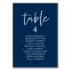 Wedding Dinner Guest Seating Table Chart Card, Modern casual Navy Blue Script.