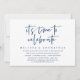 Modern Navy Blue Script themed, wedding elopement invitation card (It's time to celebrate). It is perfect for your wedding elopement casual lakeside wedding dinner, dancing and party.
