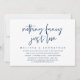 Modern Navy Blue Script themed, wedding elopement invitation card (Nothing Fancy Just Love). It is perfect for your wedding elopement casual lakeside wedding dinner, dancing and party.