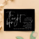 The Night Before. Modern romantic minimalist design themed, wedding rehearsal dinner invitation card (in classy black, landscape orientation theme). Planning a wedding Rehearsal Dinner celebration with the to-be Bride and to-be Groom, before their BIG day? Invite the guests with this perfect Wedding Rehearsal Dinner Invitation Card. Easily edit it with your rehearsal dinner invitation details.