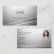 Casually Silver Curved Decor with Logo and Photo Business Card