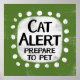 An irreverent and cute typographic animal design that says "Cat Alert, Prepare To Pet". It features black and red text on a white rectangle with funky, playful white dots surrounding it, all on a grey background.