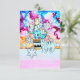 It's a colorful and vibrant Christmas card design depicting a cactus decorated with string lights and a suspicious-looking kitty against a starry background with snow falling from the sky.