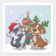 A heartwarming Christmas Day celebration where pets, especially a playful cat and a joyful dog, are the centre of attention. The scene features a cosy living room adorned with twinkling lights, a beautifully decorated Christmas tree, and wrapped presents. The dog is excitedly wagging its tail, wearing a festive holiday sweater, while the cat, perched near the fireplace, playfully bats at an ornament. Both pets are surrounded by stockings, festive treats, and a sense of joy and love, capturing the magic of Christmas through the eyes of our beloved furry friends.