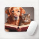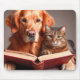 Cat and dog reading a book mouse pad