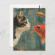 AI generated art of the cute cat looking at a large orange fish and a smaller grey fish