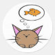 cat and fish round sticker