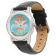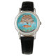 The original drawing on this eye-catching wristwatch shows a mischievous orange-brown tabby cat grinning and staring - with wide, hungry eyes - down at a goldfish in its bowl. The naughty kitty has its paws inside the aquarium while the bright orange fish stares up at it. This unique novelty watch has a folk art / slightly dark Gothic look to it with a streak of devious humour. It's perfect for anyone who loves cats and fish.