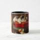 Coffee Mug featuring Henriëtte Ronner-Knip’s oil painting Mother’s Pride (1821-1909). A mother cat sits on a red chair and watches her five kittens playing on the chair and the golden curtain. A fantastic gift for cat lovers and Romanticism enthusiasts.