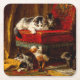 Cat and Kittens Playing with Chair Square Paper Coaster