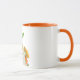 Cute, cartoon, cat with orange spring flowers. Girly, adorable monogrammed mug.