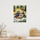 cat and otter having a forest picnic poster