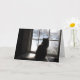 Large card with image of a black cat looking out the window at a very quite snowy scene in Delaware County PA